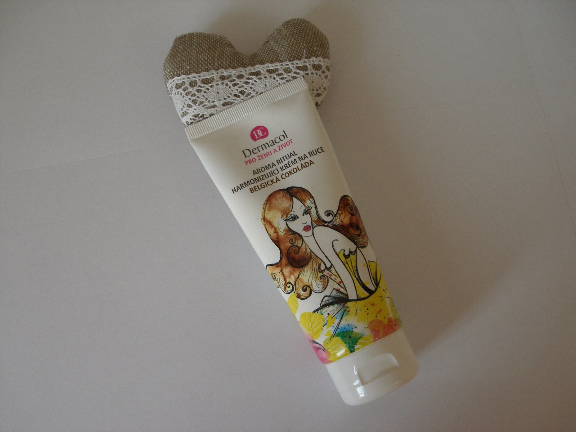 DERMACOL- AROMA RITUAL-HANDCREME/BELGICKÁ ČOKOLÁDA- O tomto krému se tu asi moc rozepisovat nemusím. Celkově mi příjde že je tato řada v ČR oblíbená. Nádherně voní a ruce hezky zhydratuje. Bohužel tento krém neseženete, protože to byla limitovaná edice pro časopis SVĚT ŽENY. Ne, normálně tento časopis neodebírám ale ten krém tam tak zářil, že nechat ho tam, bylo snad nemožné.... :)